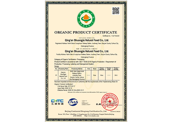 雙潔米業(yè) SHUANG JIE MI YE 您現(xiàn)在的位置:網(wǎng)站首頁 > 雙潔米業(yè) > 資質(zhì)榮譽(yù) 公司介紹 企業(yè)文化 領(lǐng)導(dǎo)致辭 資質(zhì)榮譽(yù) 員工風(fēng)采 生態(tài)原產(chǎn)地產(chǎn)品保護(hù)證書 有機(jī)產(chǎn)品認(rèn)證證書 有機(jī)產(chǎn)品認(rèn)證證書 有機(jī)產(chǎn)品認(rèn)證證書 有機(jī)產(chǎn)品認(rèn)證證書 環(huán)境管理體系認(rèn)證證書 共54條記錄 當(dāng)前為第1頁/共9頁上一頁1234...9下一頁